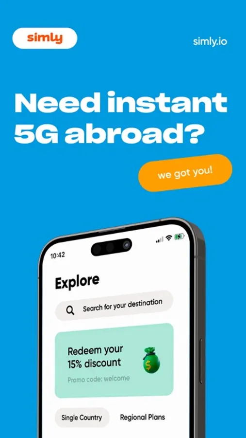 Get your eSIM with Simly and experience unparalleled convenience in mobile connectivity while traveling. Download the Simly app, and you're just a few taps away from a hassle-free travel experience!