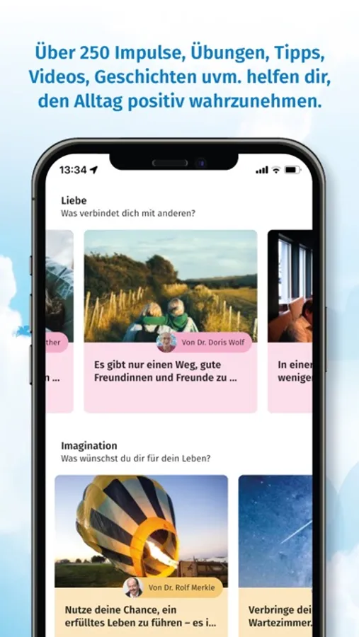 Die Lebensfreude-App ist dein Coach auf deinem Weg zu innerer Stärke und Zufriedenheit. Sie gibt dir jeden Tag 5-minütige, positive Impulse, Tipps, Affirmationen, Inspirationen und Übungen von Expert:innen aus positiver Psychologie und systemischem Coaching, um deinen Alltag zu bereichern. Nur wenige Minuten am Tag reichen aus, um nachhaltig mehr Zufriedenheit und Freude in deinem Leben zu verankern. Hol dir jetzt gleich die Testversion und genieße kostenlos 7 Tage voller Lebensfreude.