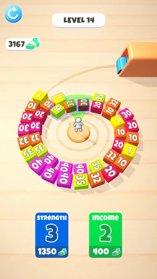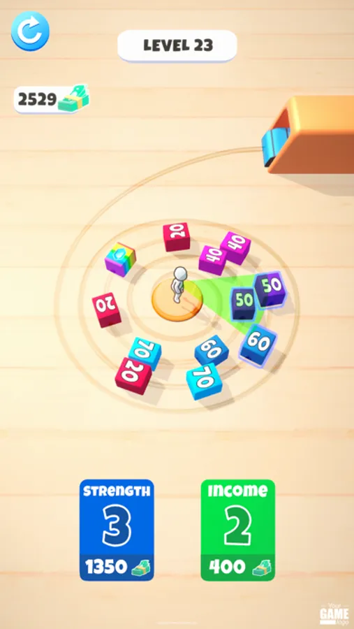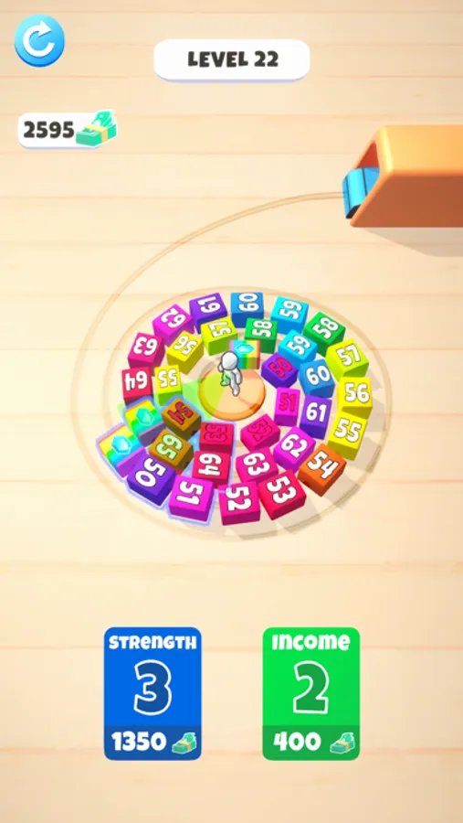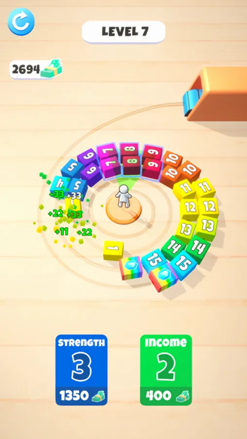 Blow up cubes and earn in game currency. Increase your character's stats. Higher your strength is, the more cubes you can destroy.