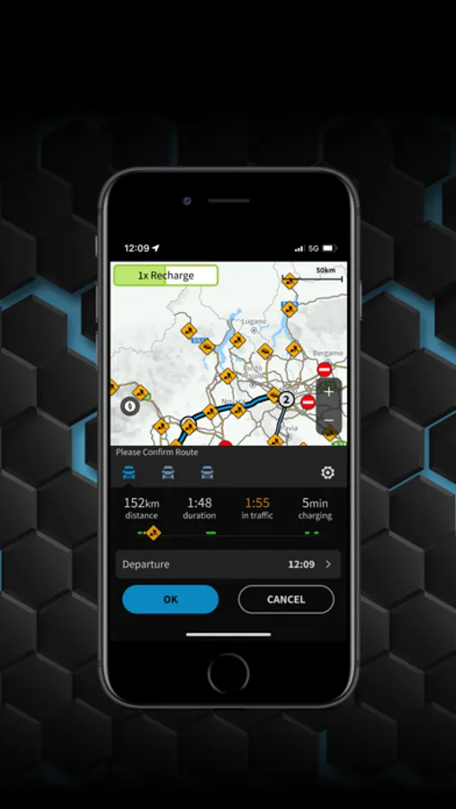 - Vehicle data and driving style data integration, including energy consumption, air conditioning, electric power take-off, and much more data in the calculation algorithms of route and residual battery charge status