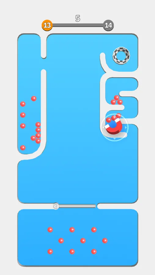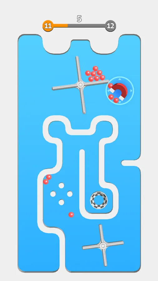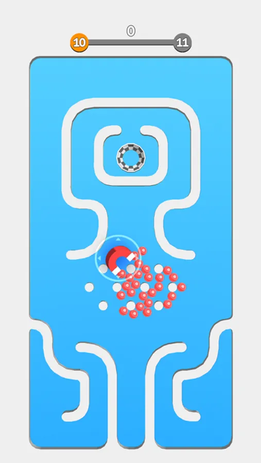 Drag the magnet around and complete levels by attracting every marble in the exit, watch out for obstacles and hazards.