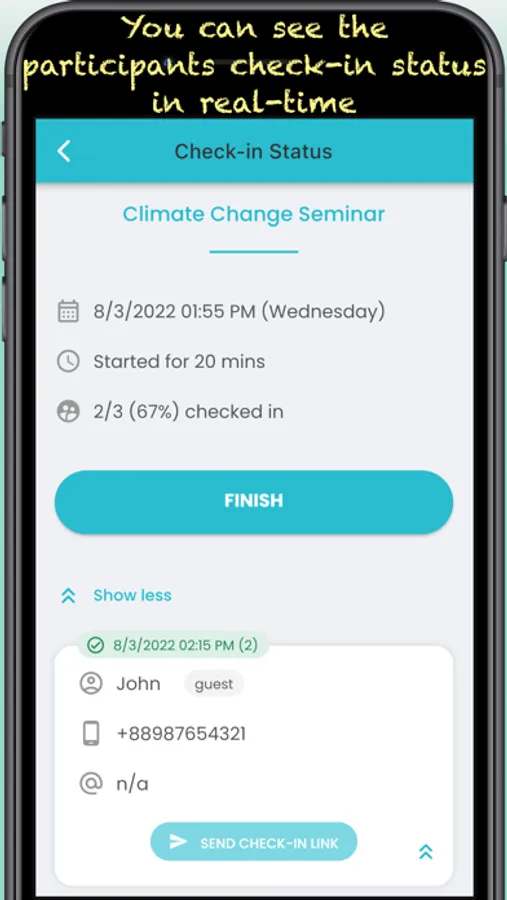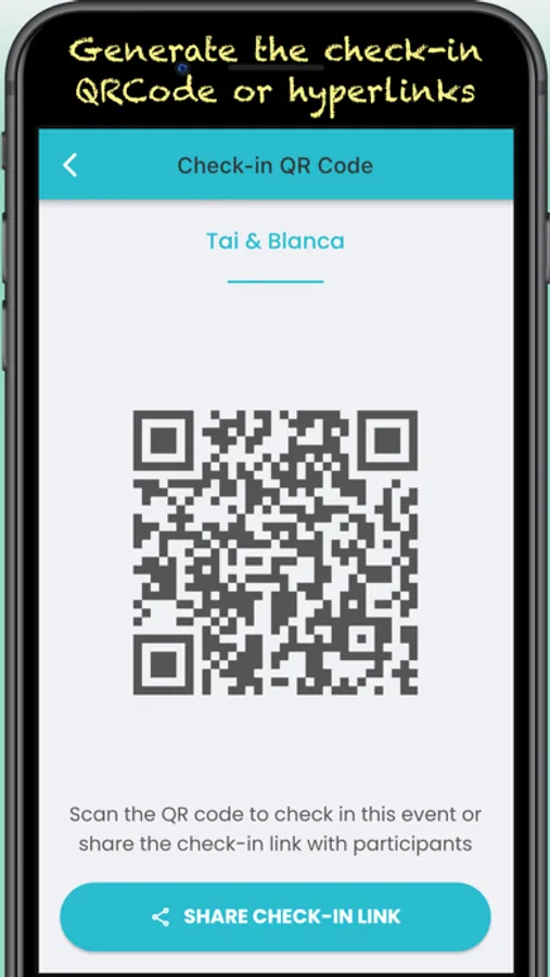 - Generate a unique QR code. The participants scan it for check-in your event.