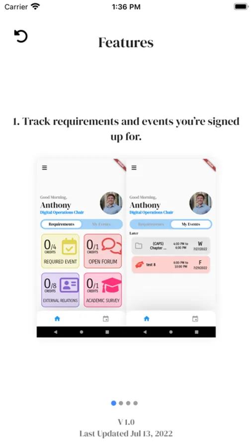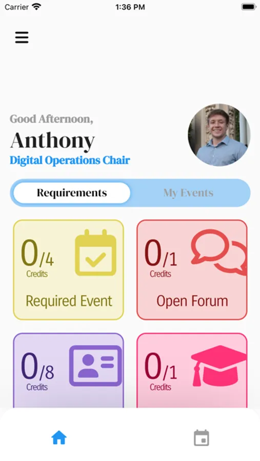 Alpha Phi Omega Mobile is a tracking app that keeps brothers updated with member requirements and their chapters' upcoming events.