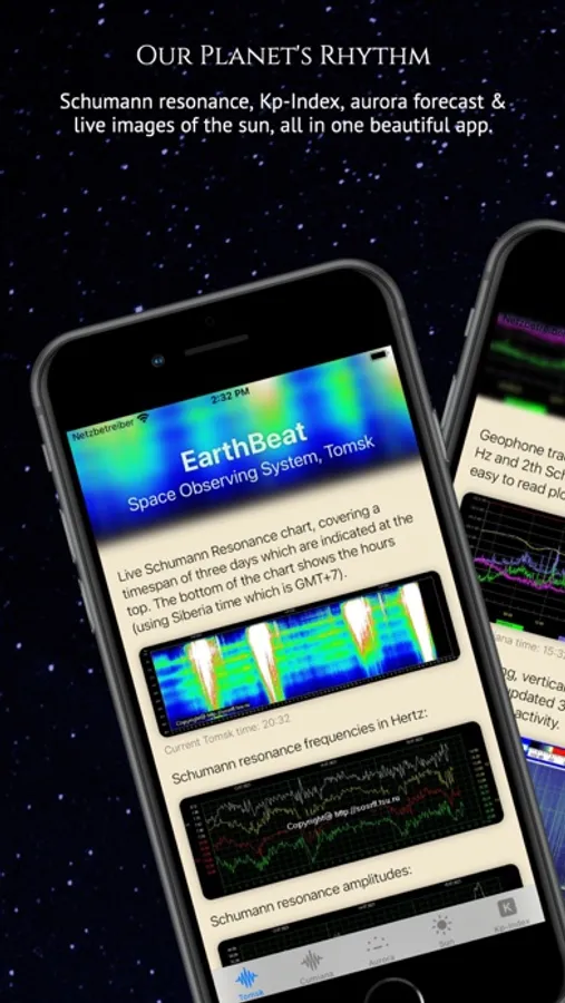 I've designed this app not just to track the Schumann resonance, but to also visualize crucial space weather indices. These include the Kp-Index, its forecast, and the Hp30 and Hp60 graphs. The Kp-index, a global metric of geomagnetic activity, is particularly interesting for those studying space weather and spectacular phenomena like auroras.