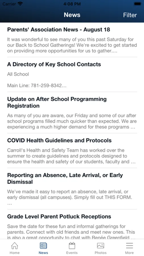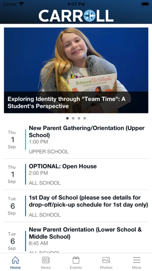 The Carroll School app provides parents with all the information they need in one place, conveniently accessed and formatted specifically for consumption on their mobile devices.