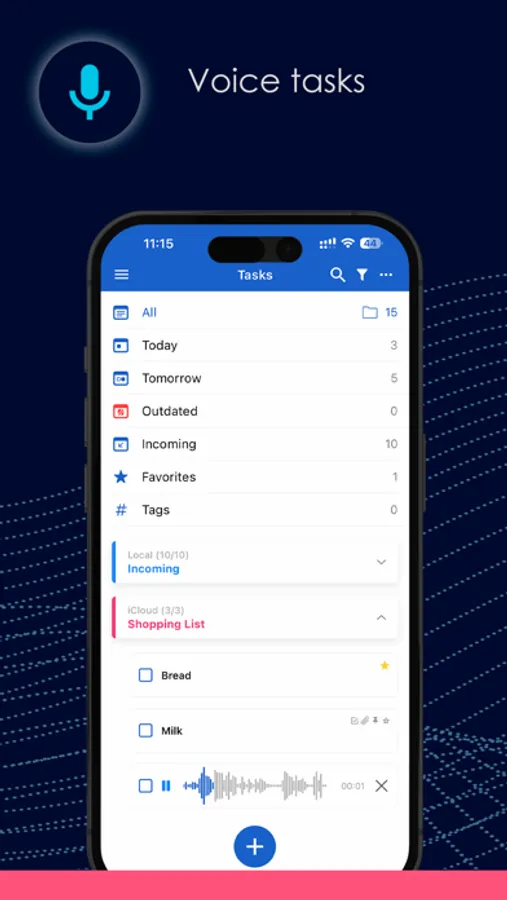 Our to-do planner is easy to use. Work with your tasks offline, and when you're online, the app will sync all your phone reminders created in your iCloud, Outlook, and Exchange accounts.