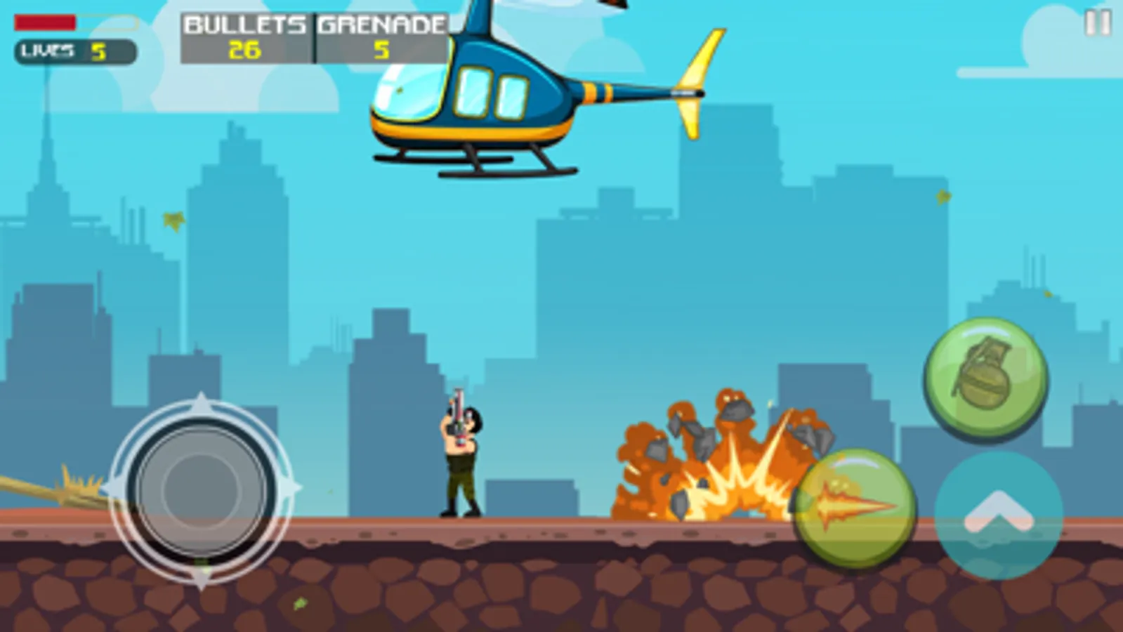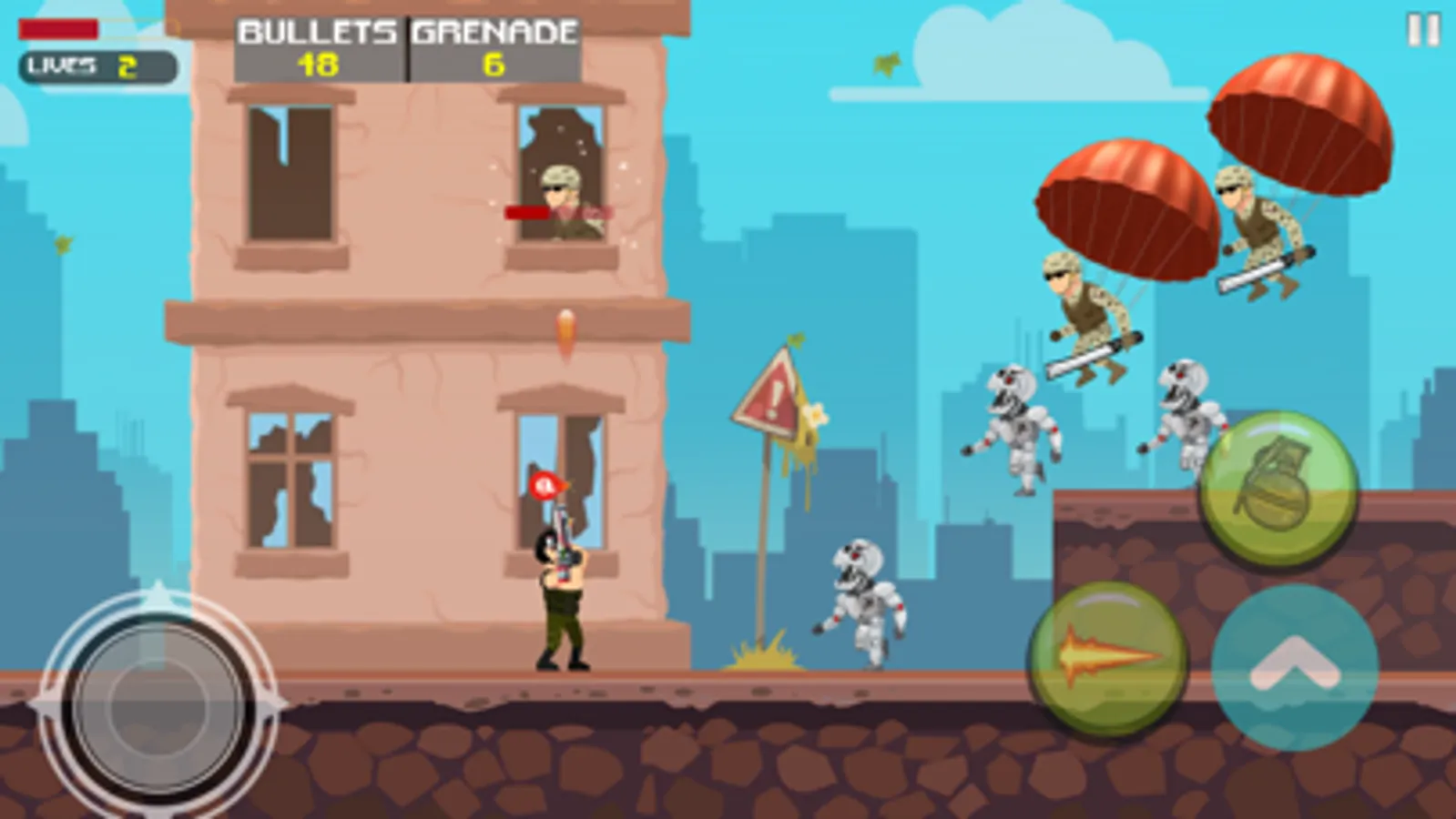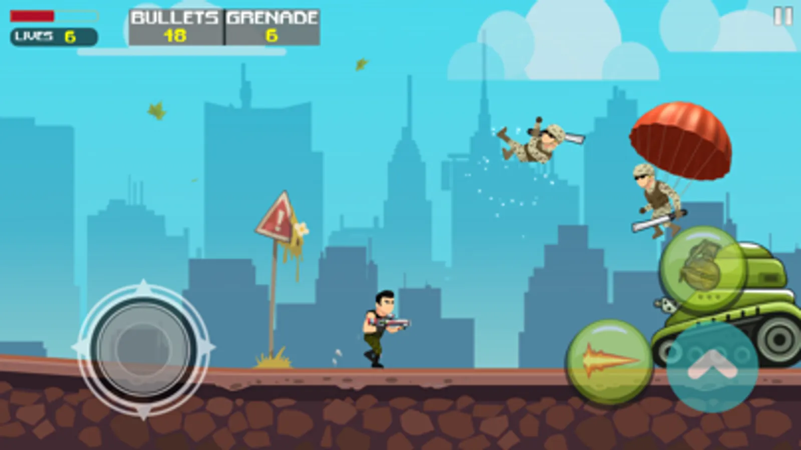 Metal Commander combines the adrenaline of platform-style games with the action of 2D shooters. Use the pad to move and tap to jump and shoot. Also use different guns and grenades!