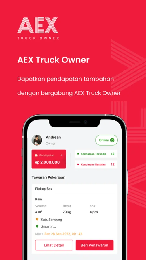 Aplikasi AEX truck driver (perusahaan dan perorangan) merupakan solusi digital yang dapat membantu truck driver dalam mengelola pekerjaan dari perusahaan logistik dengan lebih efektif dan efisien.