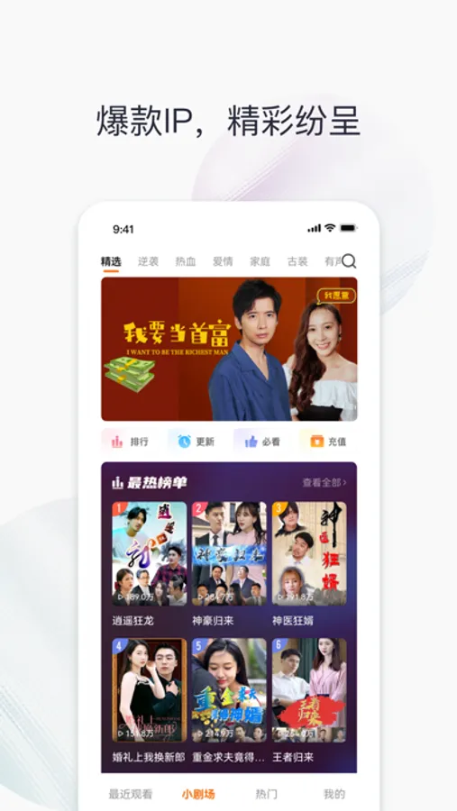 【精彩视频 绝不剧荒】 《睡错总裁嫁对郎》不小心醉酒走错房间,谁料孩子父亲竟是总裁! 《穷小子复仇记》穷小子没钱没房,被丈母娘看不起百般刁难,结局大快人心! 《我的老婆是大款》老公公司遇危机,美女老婆竟是隐藏大款,这下热闹了…… 《美女总裁的顶级豪婿》穷小子入赘豪门惨遭羞辱,身份曝光后,老婆跪地求饶! 《总裁回乡记》亿万富翁装穷回乡,却遭势利眼村民狗眼看人低! 《超级女保安之我是董事长》女总裁假扮保安,遭小员工辱骂讽刺,结局反转让人傻眼!