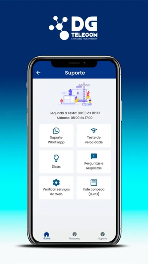 O aplicativo completo com suporte rápido na palma da mão. Ao alcance de 1 clique.
