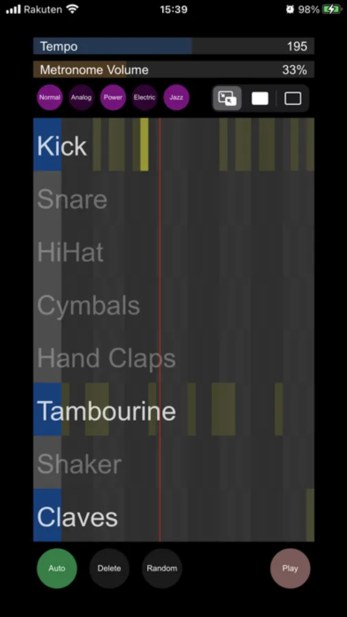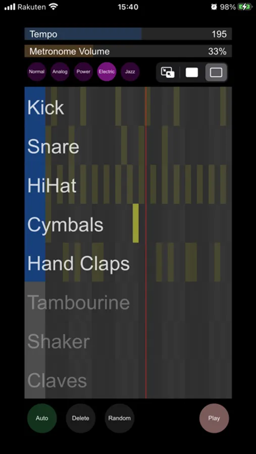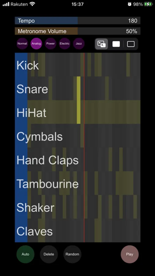 Auto: A switch that automatically generates a new rhythm each time you loop