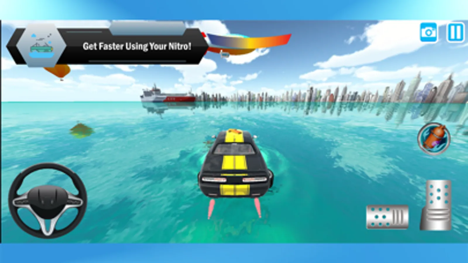 Experience the real feeling of driving and racing on water in floating car simulator. Be free in the ocean with easy controls. Use the nitro to increase the speed of the car and become much faster!