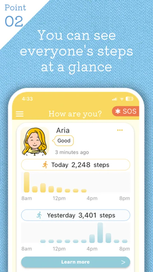You can see each other's steps and know if you're doing well. The number of steps is automatically measured just by walking with your iPhone. (*1)