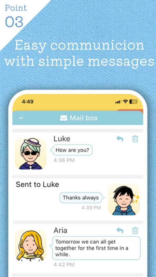 Enjoy your communication by sending messages. You can change the expression of your icon to convey your feelings.