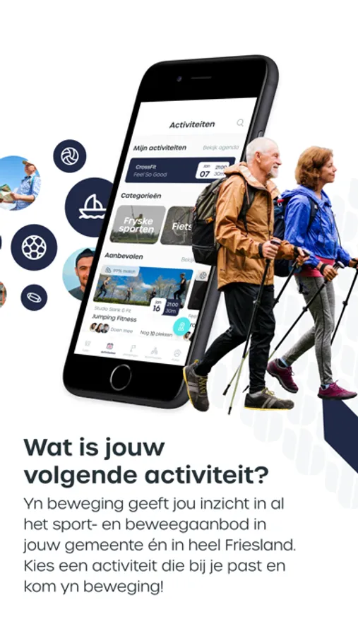 Met de app bekijk je overzichtelijk al het sport- en beweegaanbod in Fryslân. Zo kun je bijvoorbeeld een personal training boeken, een training bij de sportclub in de buurt of deelnemen aan een wandelgroep. Kies de activiteit die bij jou past en reserveer je plek.