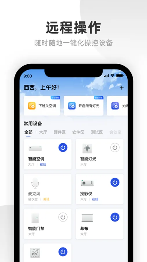 根据用户的使用习惯,每次打开app,为用户提供最常用的设备,用户亦可自己设置。