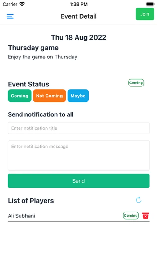This app will help save organizers so much time by allowing event organizers to create future events and allow users to reply if they are coming to the event or not. Event organizers will also be able to send out notifications to users the night before an event to remind them to reply.