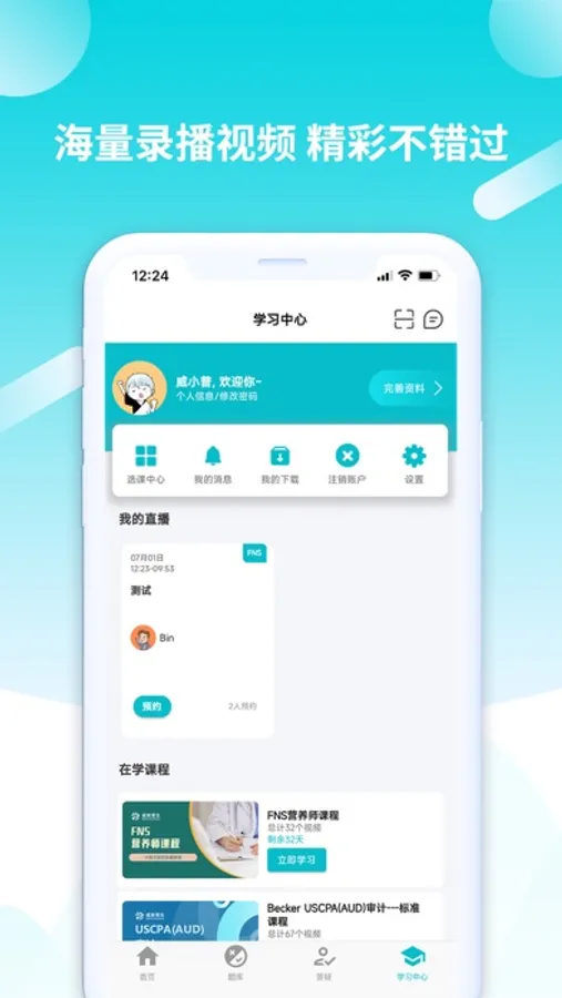 威普网校学习平台提供了集远程直播课堂,录播课程,题库练习,在线答疑于一体,让用户充分利用碎片化时间学习。