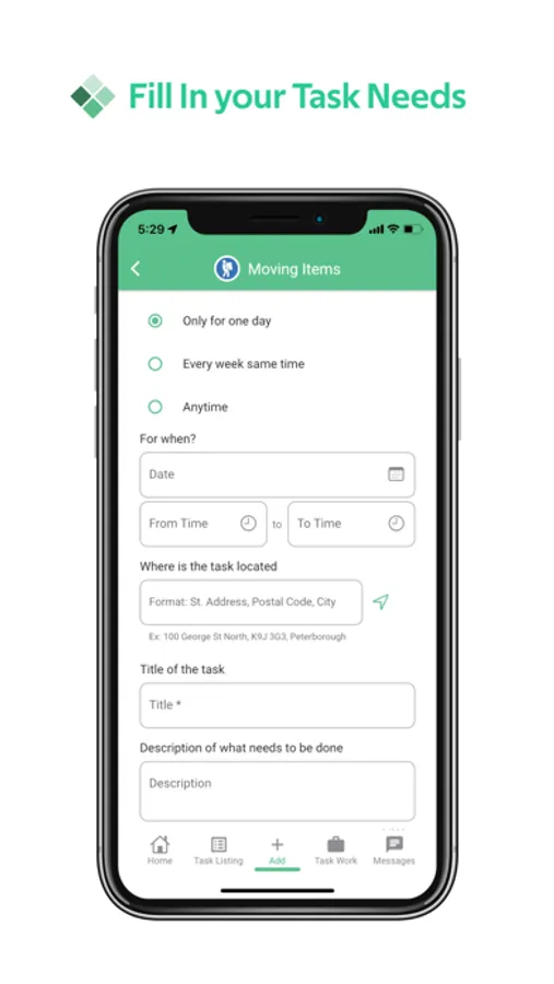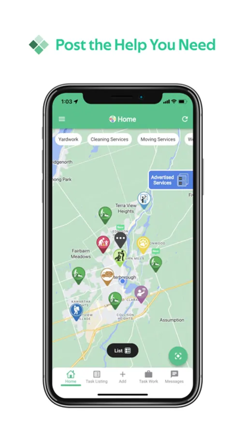 For example, if you need help with grass cutting, help with moving, or other needs, then you can list it on the map and others can apply to do the work.