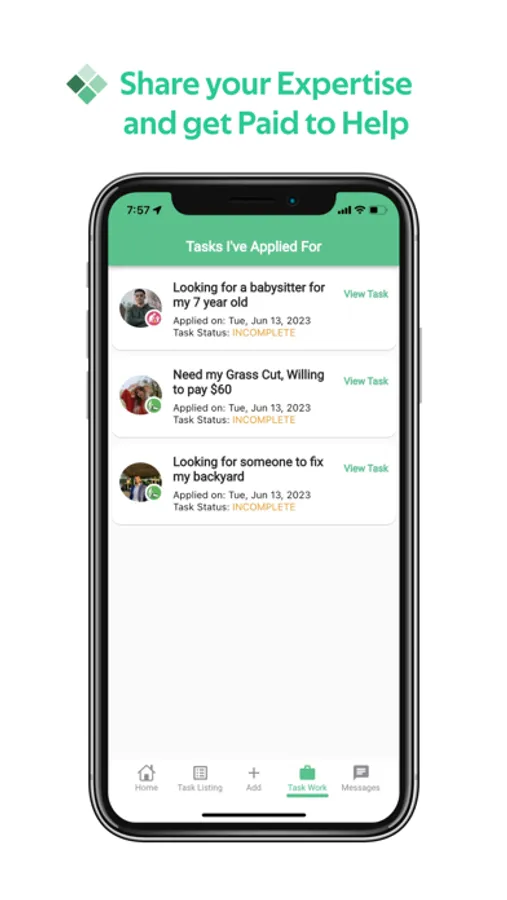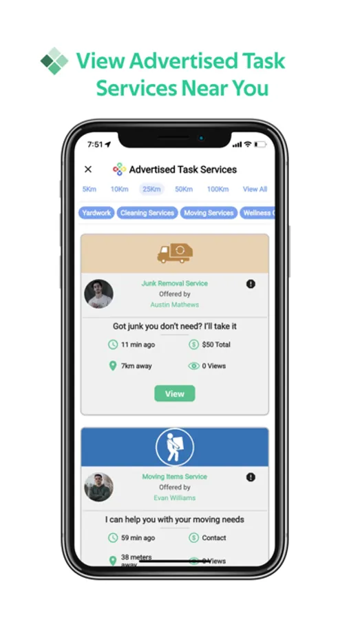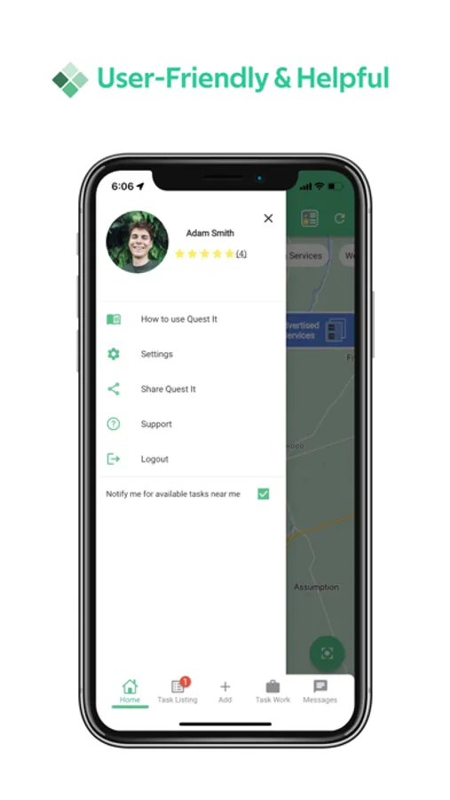 Anyone can start using Quest It as soon as they sign up. Each user can request help with a certain task or apply to do the task. You can also view advertised services in your area to get the help you need.