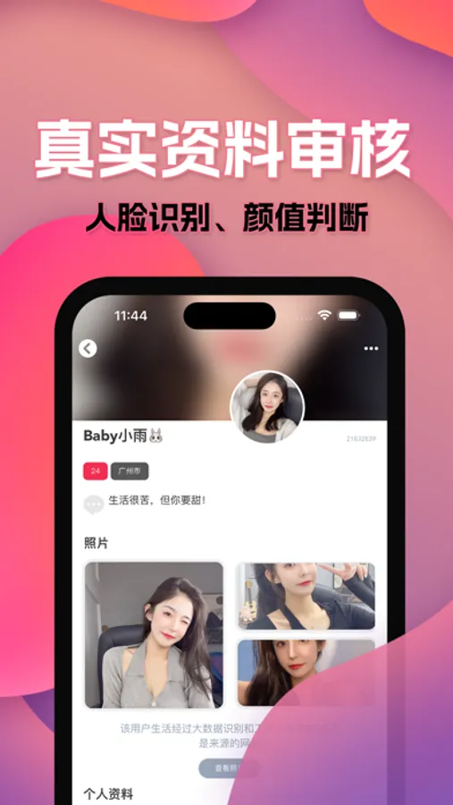 真实有效:公开资料需经过实人识别,保证资料真实。