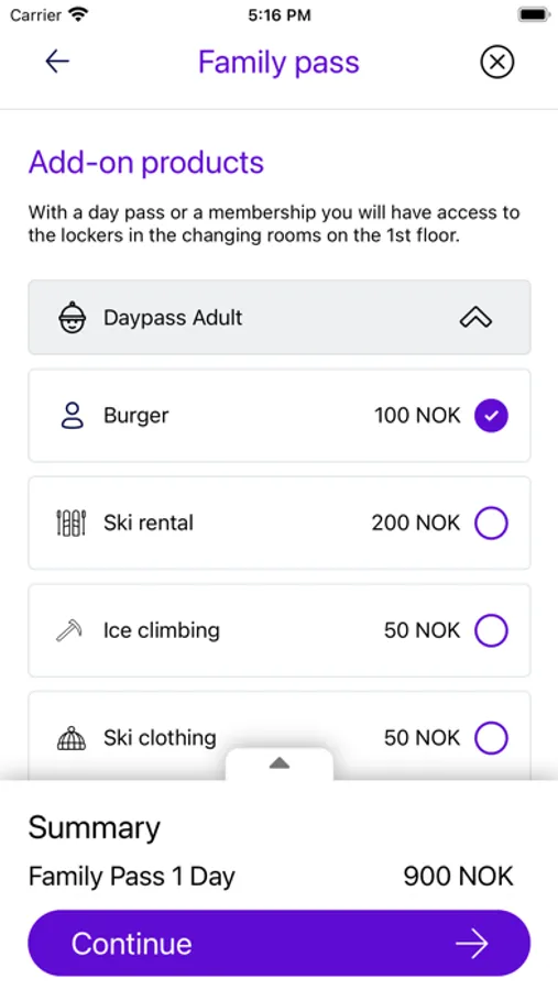 SNØ forener langrenn, snowboard, alpint, freeski og isklatring under samme tak. I appen kan du kjøpe pass eller medlemskap, og skanne deg direkte inn i garderobeskap og adgangsport med mobilen når ankommer.