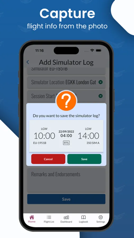 With MyLog, you can effortlessly maintain your logbook with ease. Simply add your flights manually or conveniently capture flight hours by taking photos of your aircraft displays. Alternatively, let MyLog automatically calculate block and flight times for you. Plus, our MyLog Watch App allows you to start and stop live flights without ever needing to touch your phone.