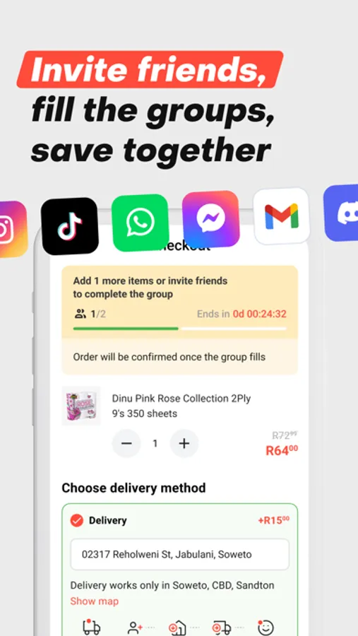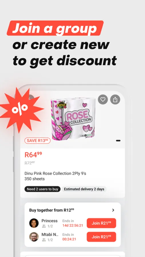 Create groups with your friends, neighbours and relatives then choose what you want from a wide range of quality products and get amazing wholesale prices!