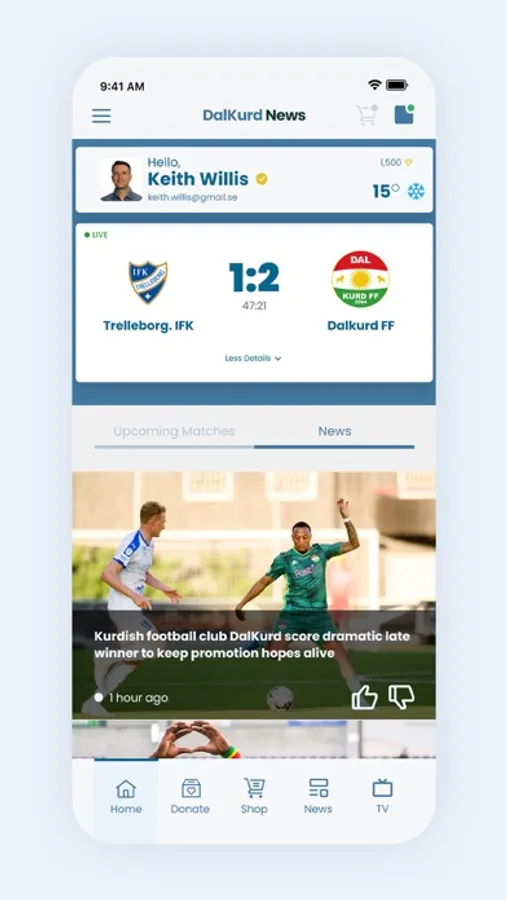 Using this application user can see live score and verities of information related to Dalkurd. Also, user can purchase official products.