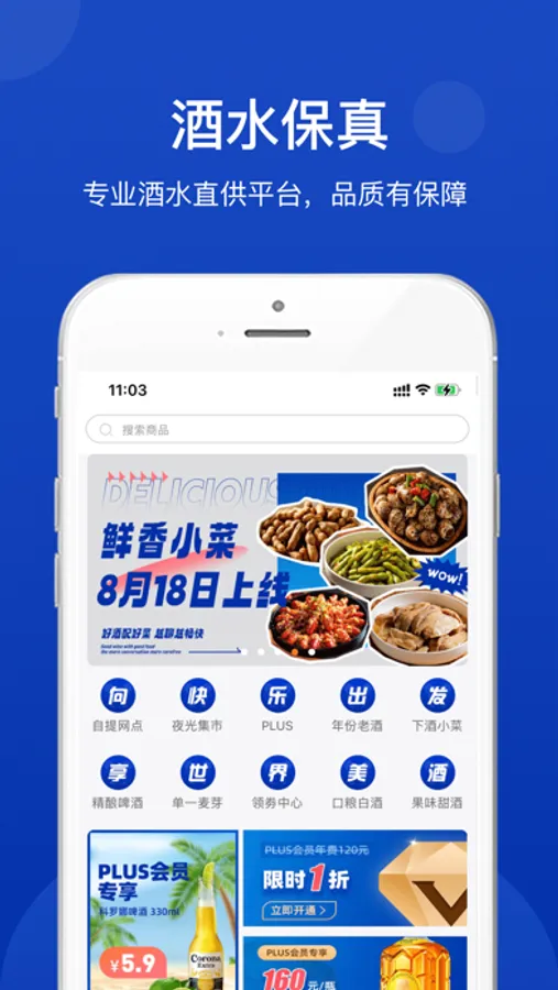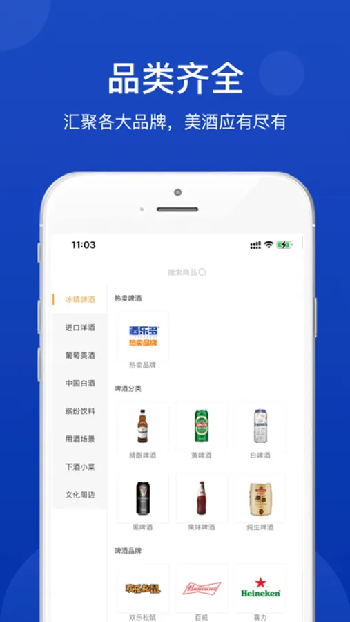 8、一键选酒:热卖好酒、名优白酒、红酒直采、喜宴用酒。