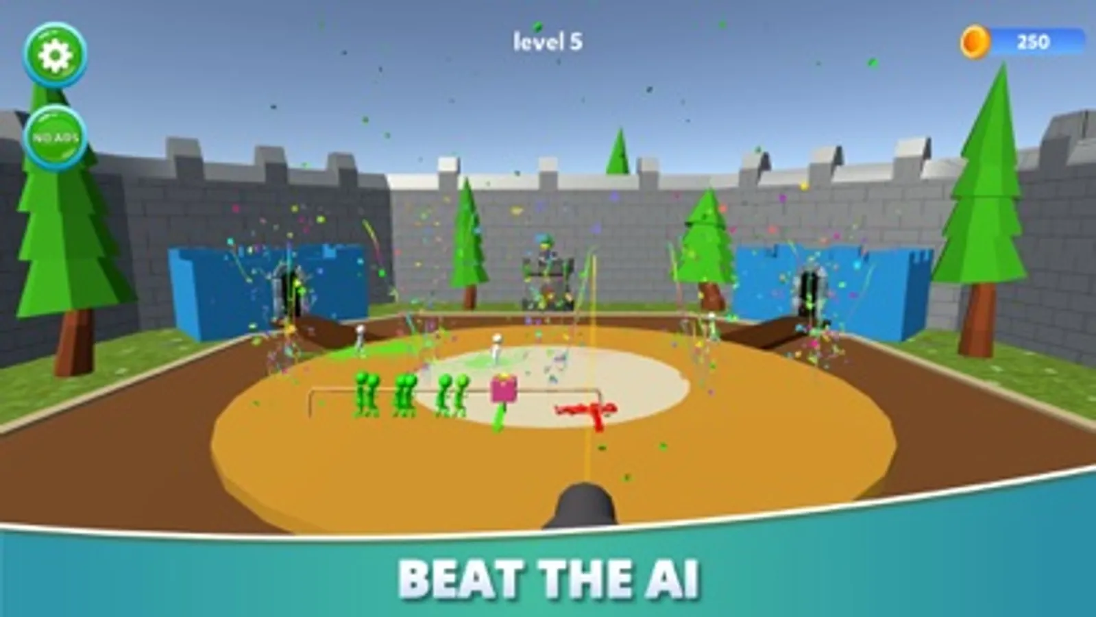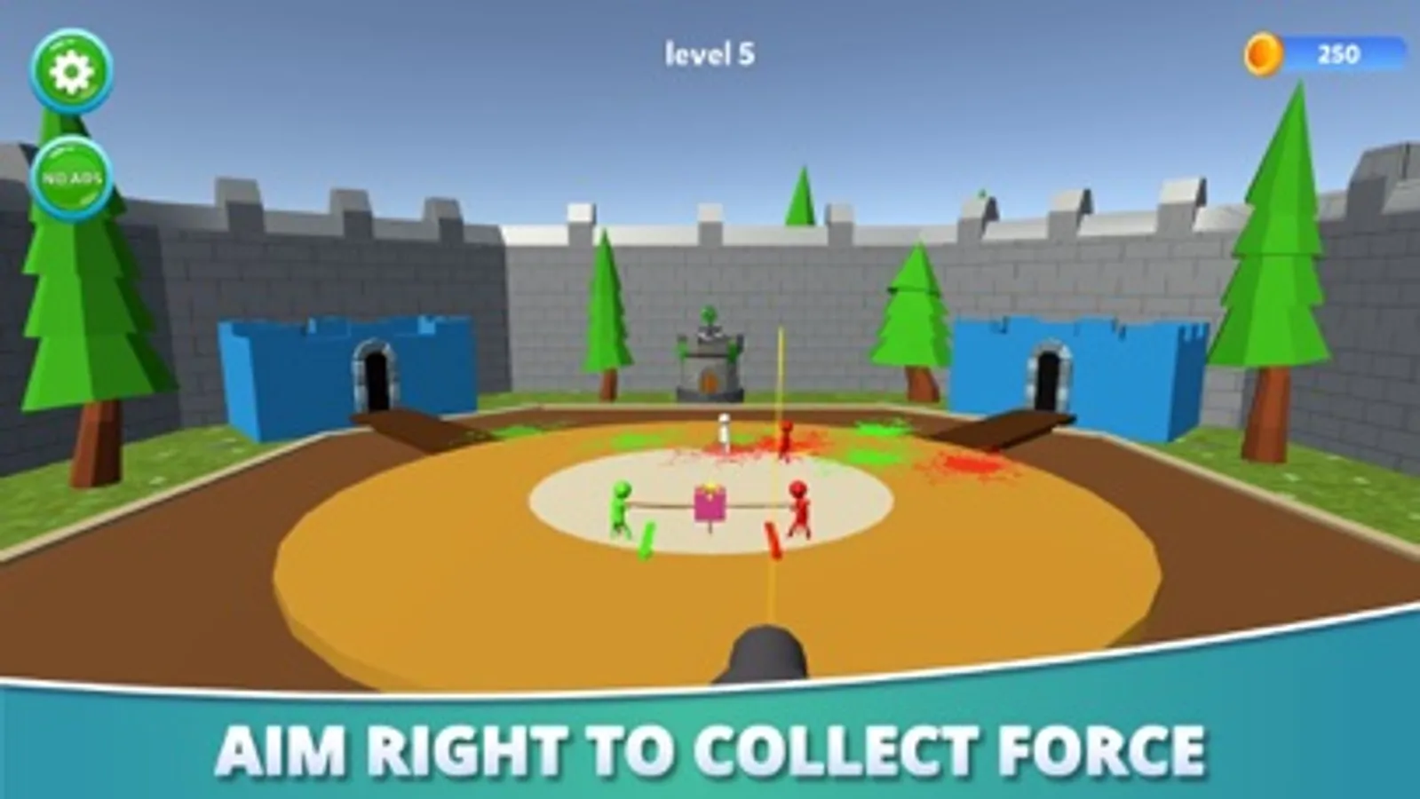1.Press play on the menu there are number of players running here and there you have to pick the cannon and shoot them to add in your team.As many cannon shoot you make as bigger will be your team.