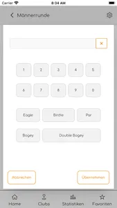 Klick. Klick. Score. Die Eingabemaske zur Erfassung deiner Schläge wurde für deine Bedürfnisse optimiert: Du gibst an, ob du einen Birdie, Par oder einen Bogey gespielt hast. Selbstverständlich kannst du die Schläge auch für deine Mitspieler eintragen.
