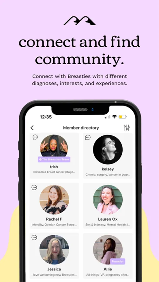 Find a Breastie: Start connecting with Breasties based on what matters most to you, regardless of whether you’re looking for a few strong connections or many.