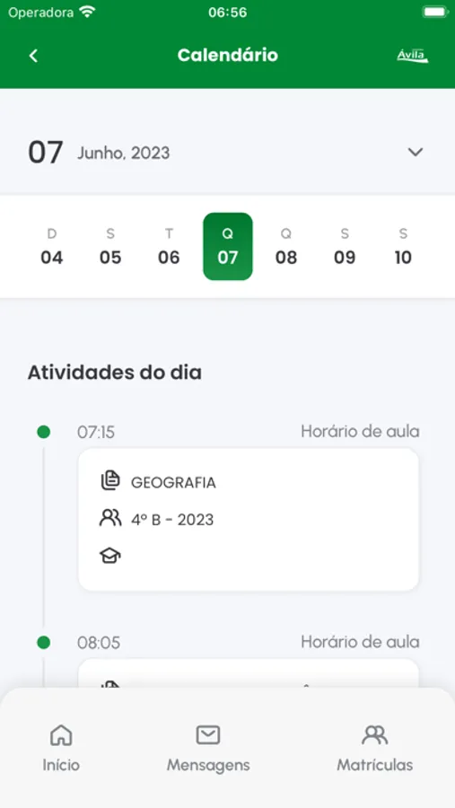 - Acompanhar seu calendário acadêmico, incluindo horário de aulas e datas importantes para a instituição