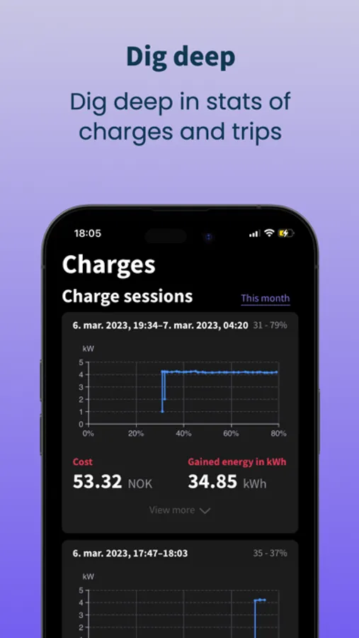 Our app lets you track your trip and charging history, so you can see where you've been and how much juice you've used. With throttled charging detection, you'll get notified if you're charging slower than you should be and know why. And with smart charging and notifications, you can optimize your charging routine.