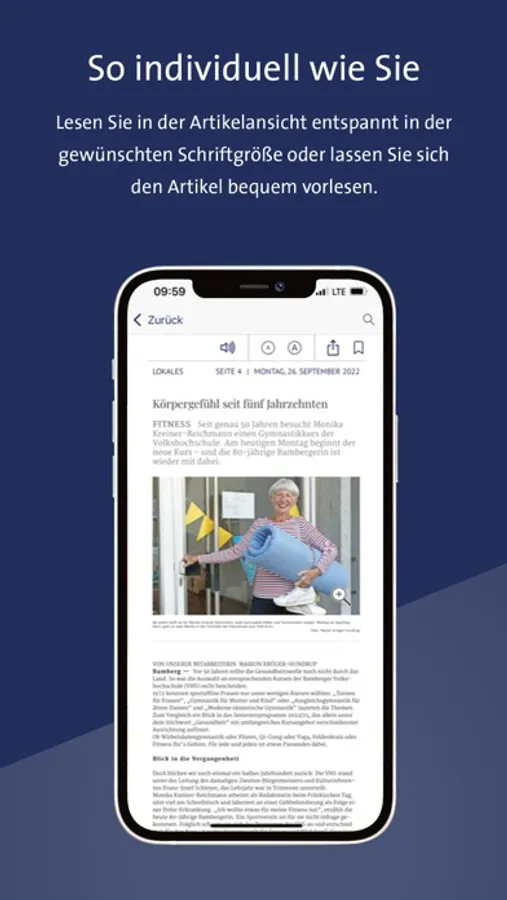 Lesen Sie das E-Paper in der für Sie geeigneten Größe: Dank der Zoomfunktion navigieren Sie intuitiv durch Ihre Tageszeitung. In der Artikelansicht können Sie zusätzlich die Schriftgröße individuell anpassen.