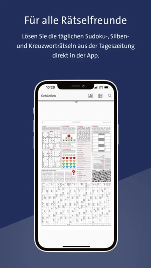 Mit interaktiven Kreuzwort-, Sudoku- und Silbenrätseln halten Sie sich geistig fit. Tippen Sie einfach Ihr Lieblingsrätsel an und schon können Sie es digital lösen. Wichtig: Für die Nutzung dieser Funktion müssen Sie mit dem Internet verbunden sein.