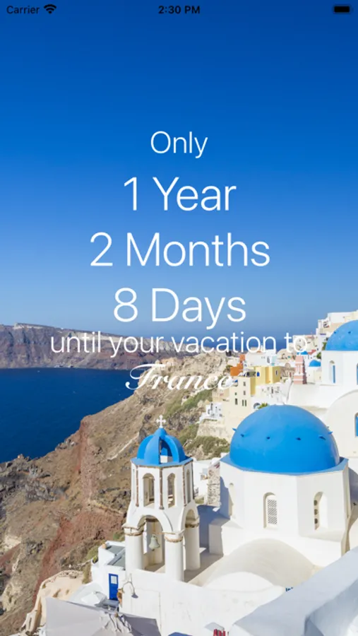 Simple, elegant design shows you how long until your upcoming big vacation with beautiful background images. There is also a widget to track your countdown on your home screen. Daily notifications remind you how long until your trip.