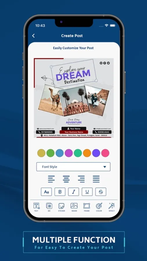 Create Festival Post, 365 Days Post, latest & Trending Events, And Even Your Advertise Posters, Banners, Creatives post, Daily Greetings Post, Appreciate Post, Business Post, Social Media Post, and More For Your Brand In One Click.
