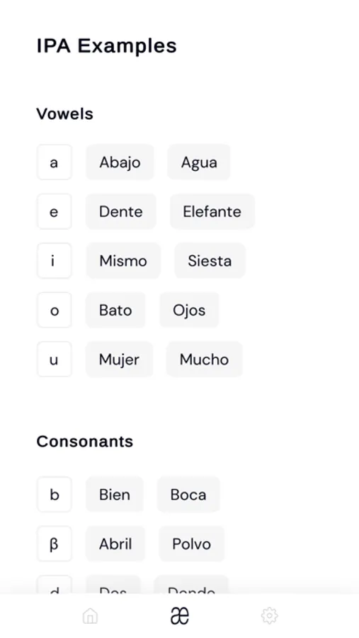 Example words of all the Spanish IPA sounds voiced by native speakers