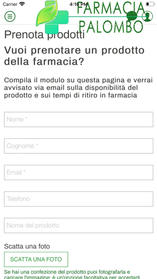 - Richiesta e prenotazione prodotti, anche mediante l'invio di immagini