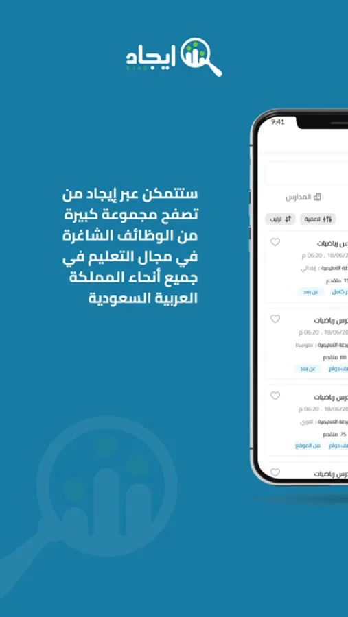 إيجاد هو تطبيق يوفر وظائف للمُعلمين في المملكة العربية السعودية.