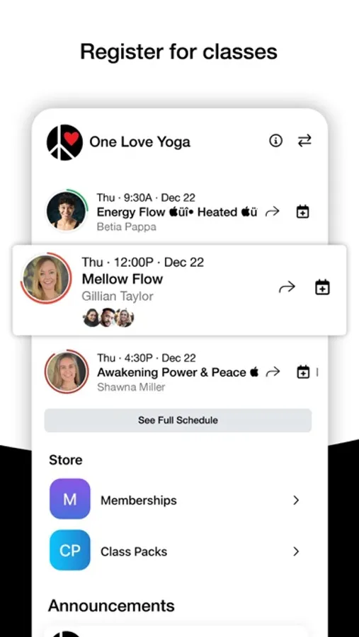 You can Book Classes, Purchase memberships or class packages including visitor passes directly from this app! Come on In! We'll see you on your mat!