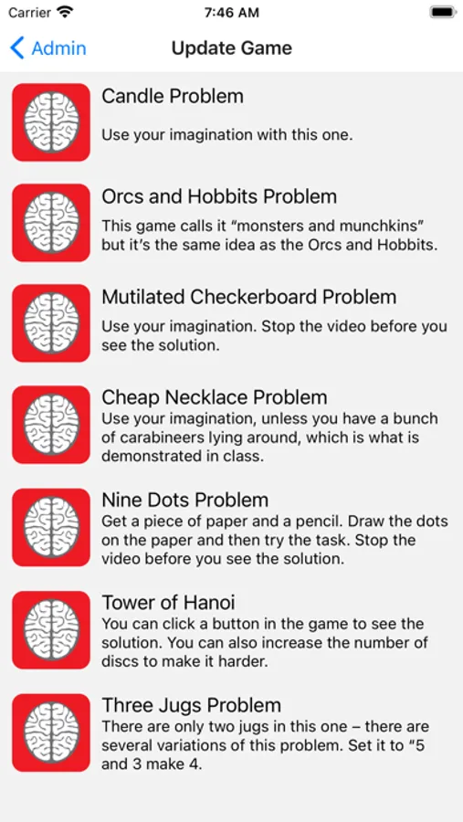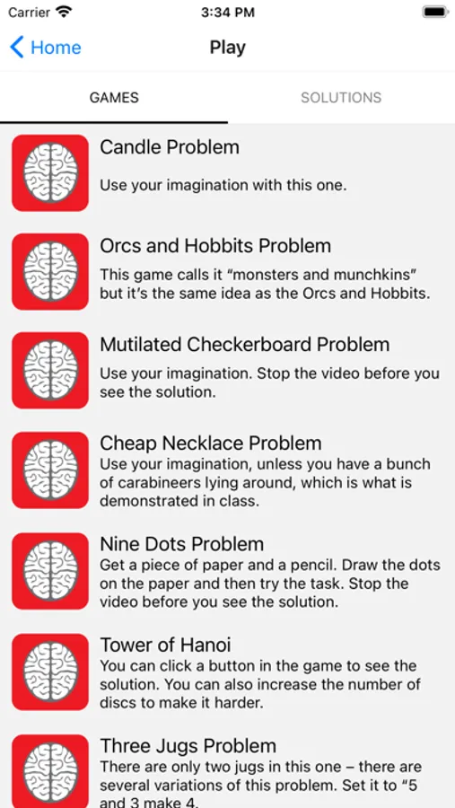 This is a great app to allow you to easily access online cognitive games and the solutions for the games.