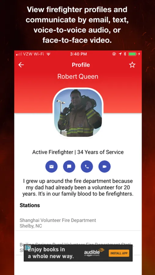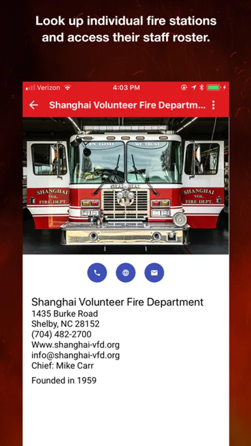 - Connect and chat live with other firefighters on-demand. Browse fire station staff rosters and reach out to individual members via phone and email.