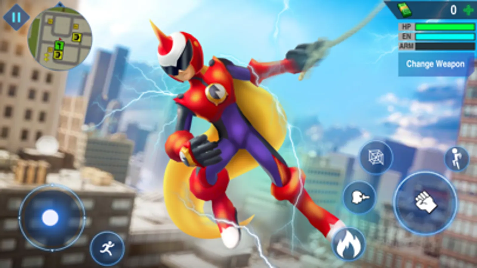 Play as a superhero character, protect the people in the city. Fight the criminals, bring peace to the world. Use the hero's special skills, destroy all enemies.