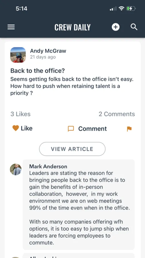 CREW daily which is our daily dose of member conversations, news, and other messages that you are courage to engage in