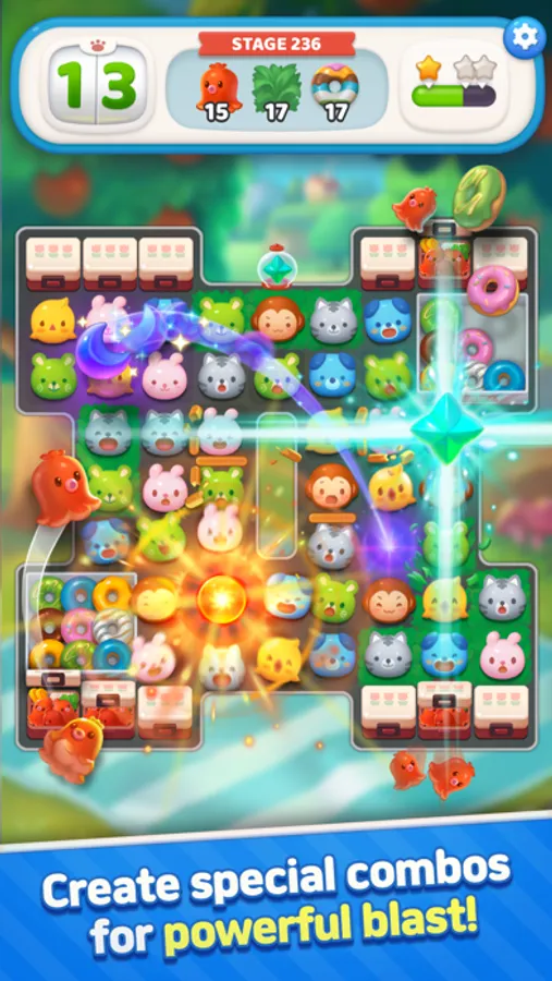 -Cute Match-3 Puzzle Game! Match Animal Blocks to get Special Combos!