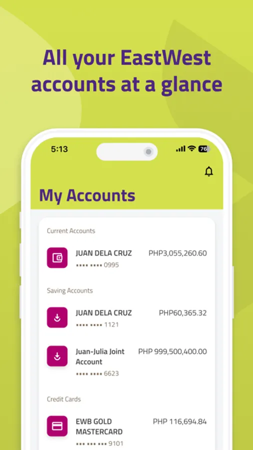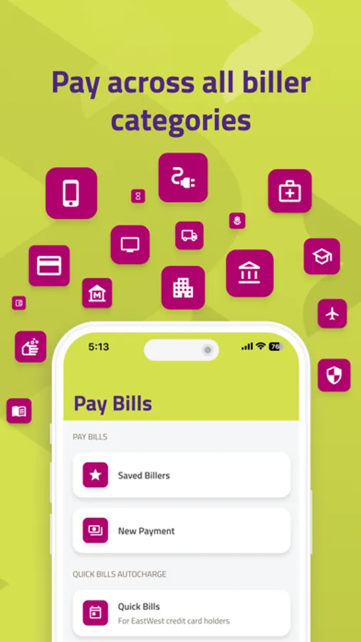 Manage your bank accounts conveniently and securely anytime, anywhere, using the EastWest Online the NEW EastWest Online Mobile app. Access your account and authorize your transactions with our new biometrics feature for safer and faster transactions. With over 170 billers, you can pay bills, transfer funds, auto charge via Quick Bills, view your account information, manage security settings of both your debit card and prepaid card, and send us a message – all from your mobile device!