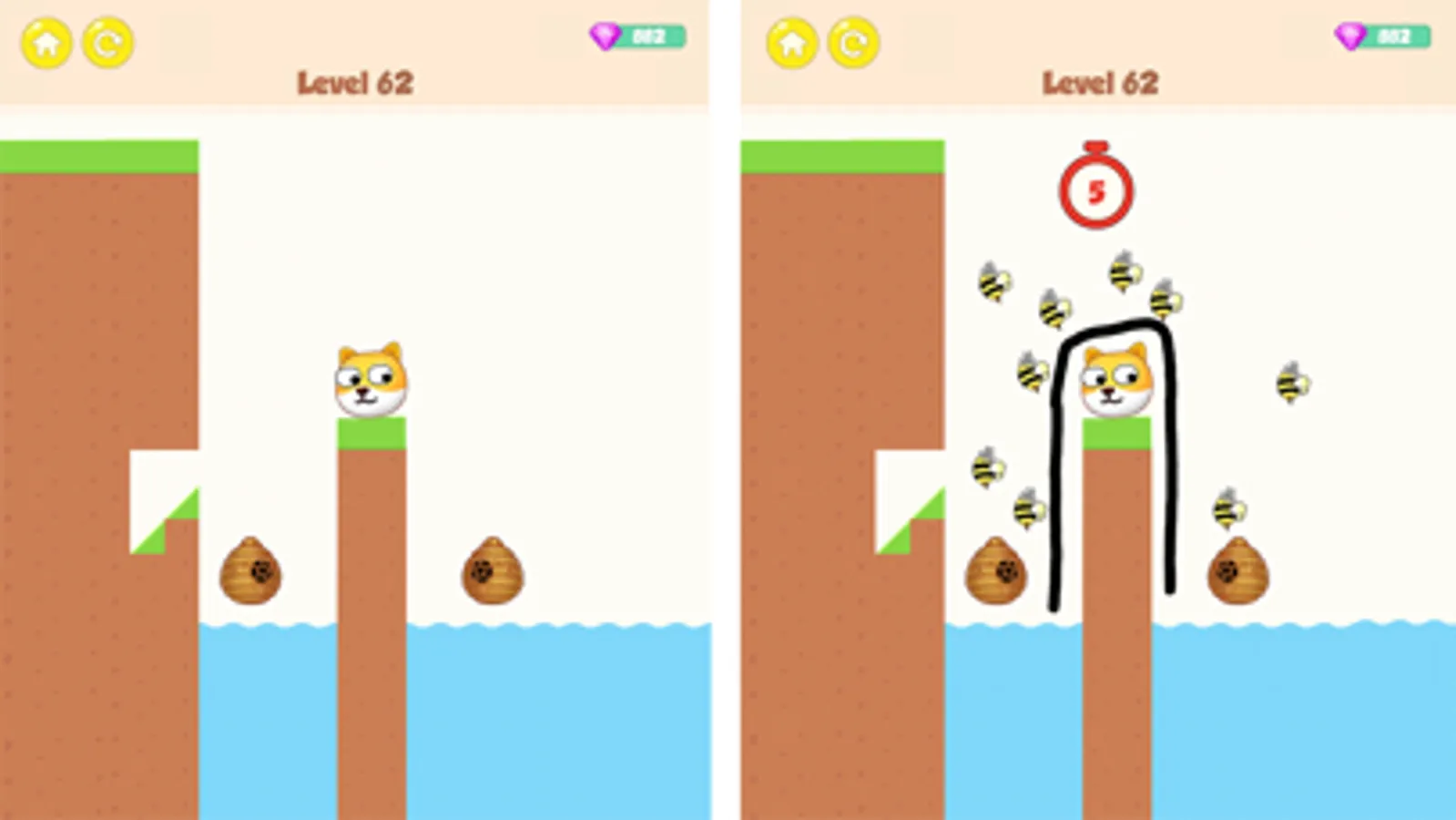 Welcome to Save My Doggy, Draw to prevent bees from hurting your pet dog.